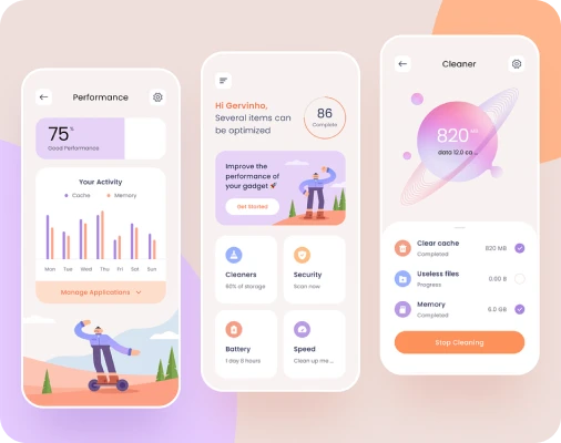- UI/UX Design: Crafting visually appealing and intuitive user interfaces to enhance user engagement and drive app usability.